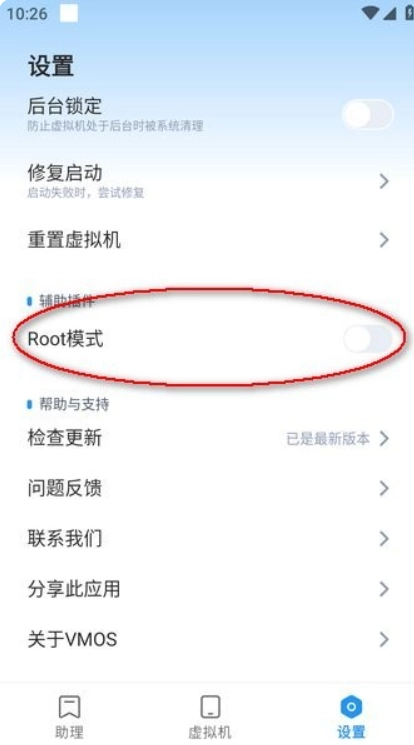 5、于右下角的“设置”选项里,通过滚动查找并启用“辅助插件”。此外,用户能够开启“root模式”,借此获取更多权限。