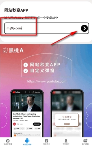 6、在“h5转”板块,仅需输入网站的URL,即可打包成一个。