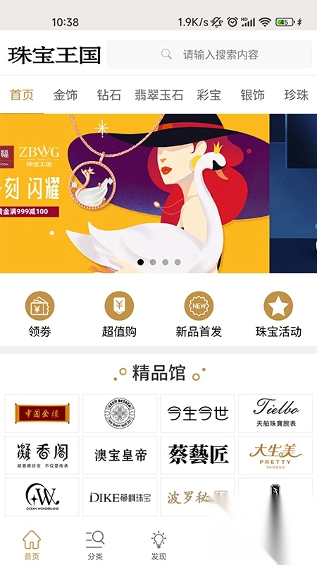 1. 一站式涵盖金饰、钻石、翡翠等多种珠宝品类,无需更换平台,就能满足丰富多样的选购需求。