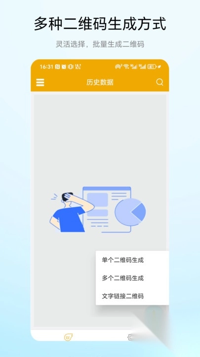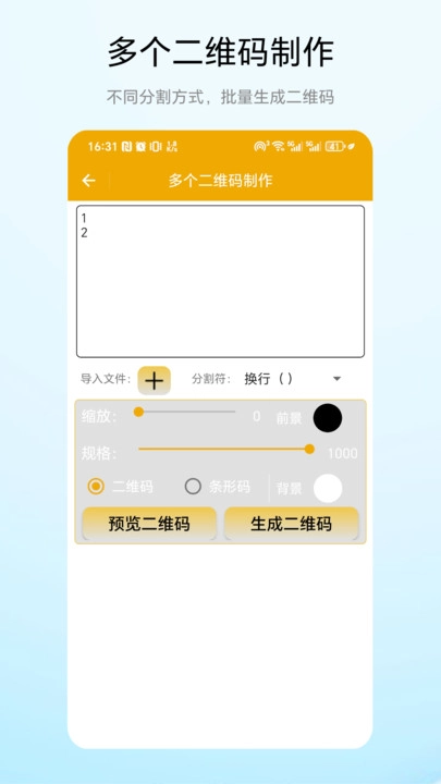 2、应用内具备单个二维码、多个二维码以及文字链接二维码这三个功能。在二维码制作页面,能够自由设定二维码的背景色与前景色。