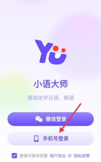 1、打开小语大师,选择【手机号登录】进入登录流程