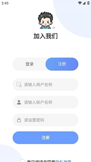 3、跳转至注册页面,填入用户名与账户名称,设定好密码,点击“注册”按钮即可。