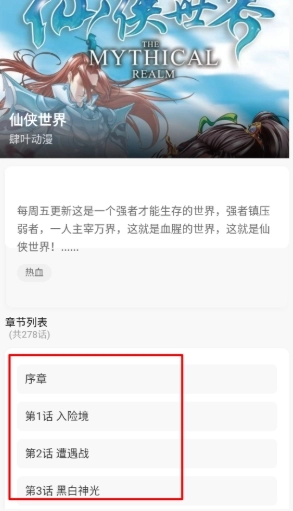 3、当进入相应的漫画详情页面时,就能查看并挑选各章节的内容。