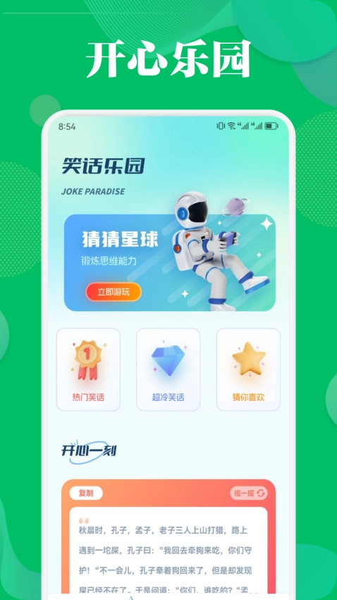 用户能够一键复制自己喜爱的各类笑话内容,如此一来,方便用户把笑话分享给朋友。