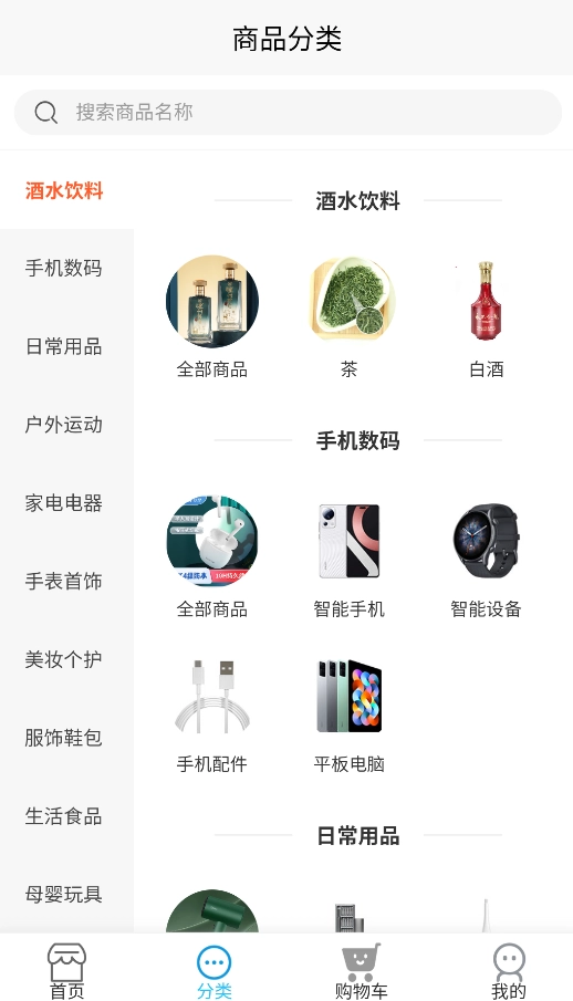 2、通过"分类"导航可按照商品类型(如服饰、家电等)筛选浏览更精准的购物清单。