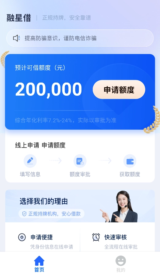 1. 融星借运用先进的智能风控评估系统,借助多维大数据交叉分析,能在3分钟内快速完成信用评估,并精准得出可贷额度范围。