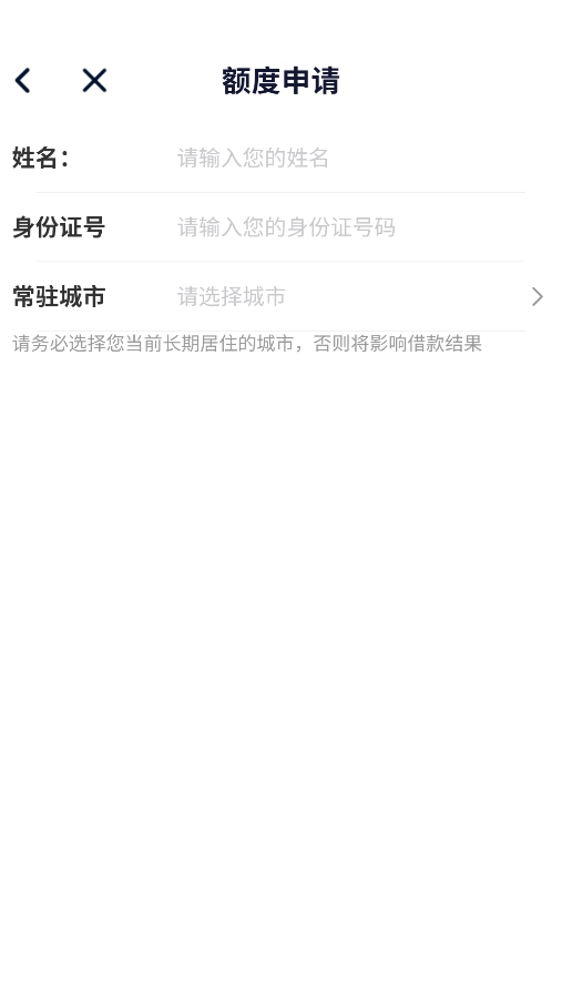 2、如实填写个人身份信息、居住城市等资料,提交后系统自动评估借款额度。