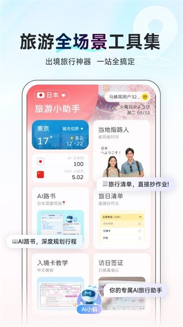 北京蚂蜂窝网络科技有限公司推出了一款名为AI行程助手的旅游行程攻略应用软件。这款软件重点推出泰国、日本的深度攻略,能实时生成个性化行程,帮助解决语言沟通、路线导航、美食推荐等诸多旅行难题,还支持景点AR预览、汇率换算等实用功能。有计划前往泰国、日本旅行的朋友,不妨来体验一下。