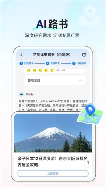- 【AI定制路书】输入偏好、时间和预算,深度研究定制专属行程