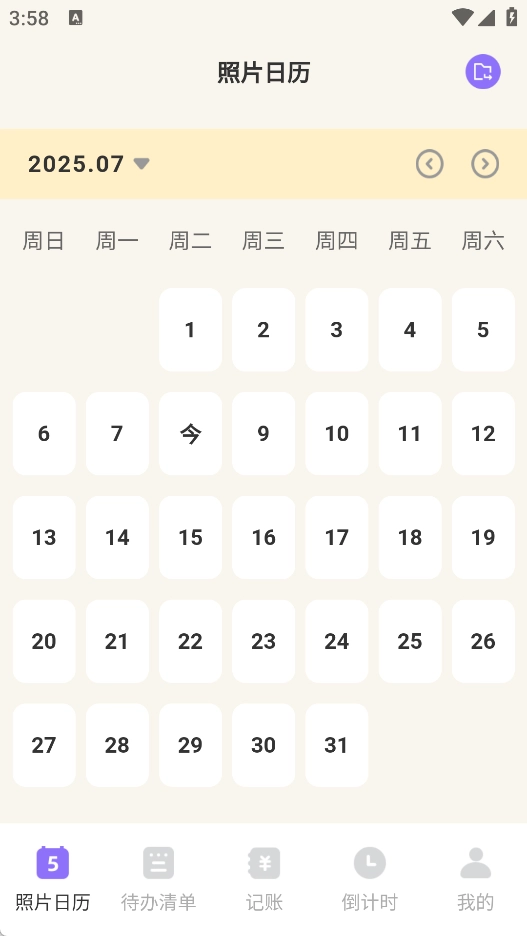 1、在照片日历页面,你能够依据不同日期添加相应照片,实现轻松管理。