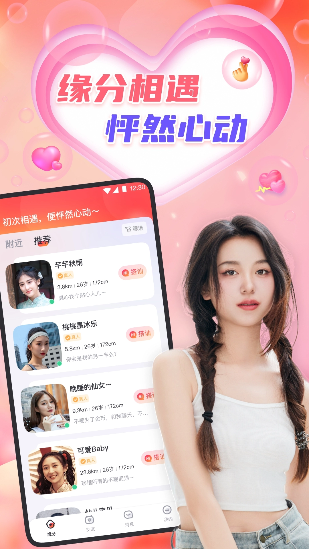 在本平台,借助智能算法,为每一位用户提供平等的展示机遇与匹配体系,确保每位用户置身「心缘」,皆能邂逅那令人怦然心动的缘分!