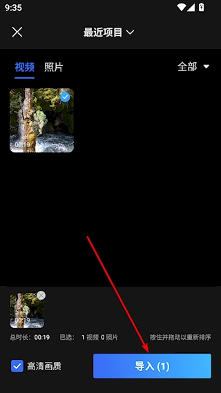 2. 挑选出需要进行处理的视频,然后点击“导入”。