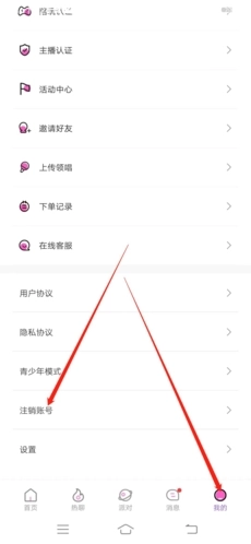 1、进入后,首先点击右下方“我的”,再将页面下拉到最底部,点击“注销账号”;