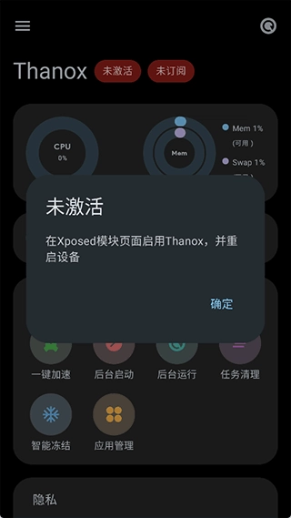 在安装Thanox apk之后,打开Xposed installer应用程序,然后勾选Thanox。