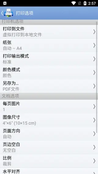 7、点击选项,能够对诸如图像尺寸、颜色、比例、页面等打印设置进行更改。