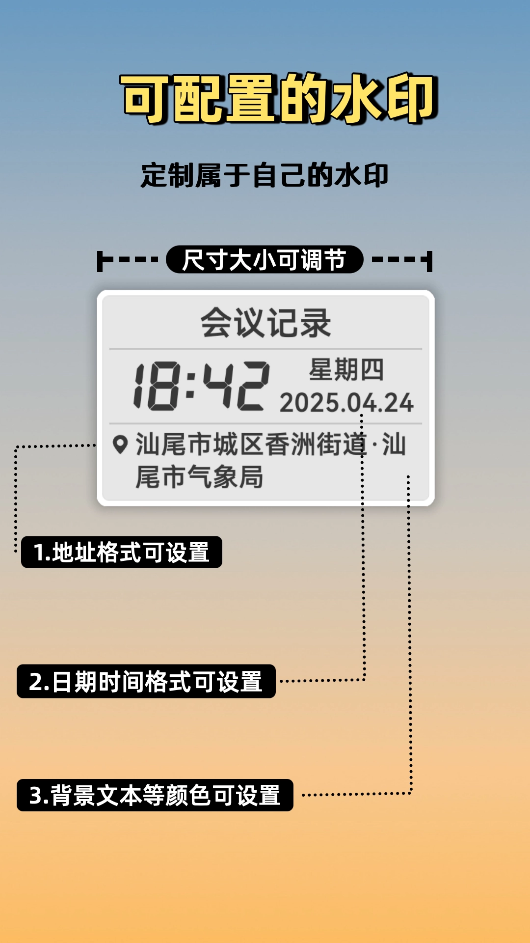 只需按下快门拍照,水印便会自动生成,无需手动添加。无论是此刻的具体时间、精确的地理位置,还是天气状况、经纬度等信息,都可一键嵌入照片之中。