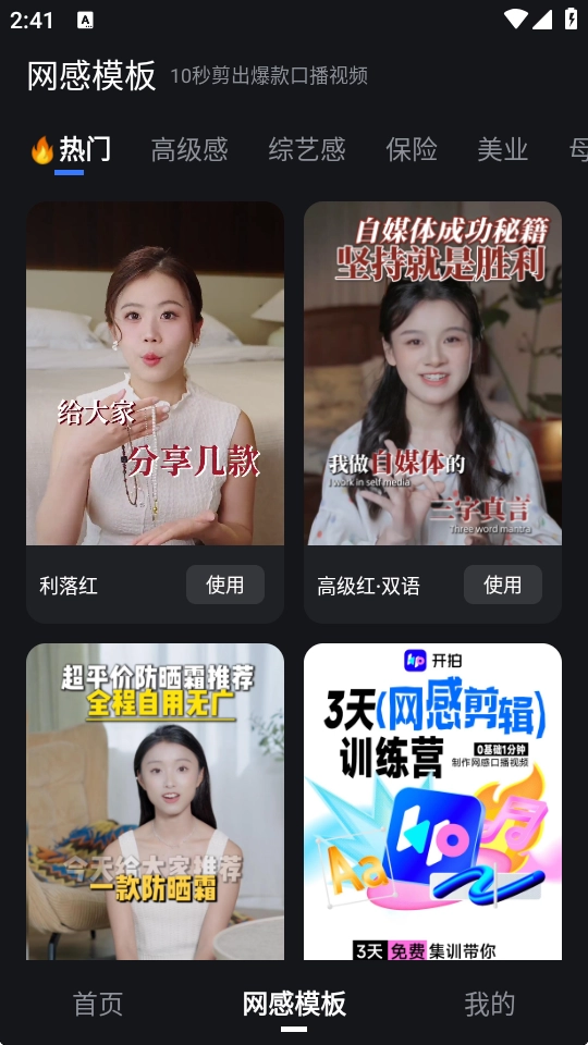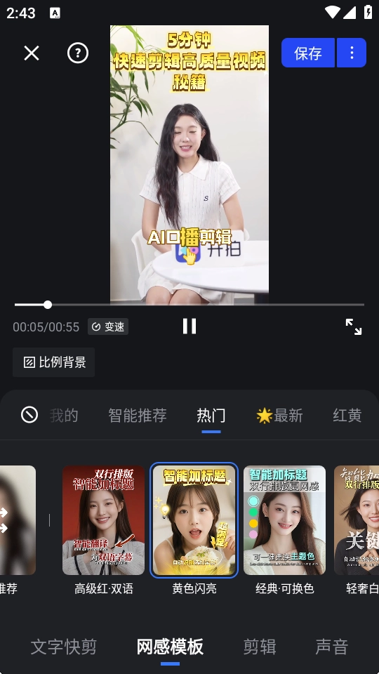 【网感必备模板】AI 精准智能匹配贴纸花字、音乐音效等丰富素材,深度洞悉专业博主剪辑思路。精心打造 50 余种涵盖多风格、多行业的剪辑模板,只需 10 秒,一键轻松剪出网感爆棚的口播视频!