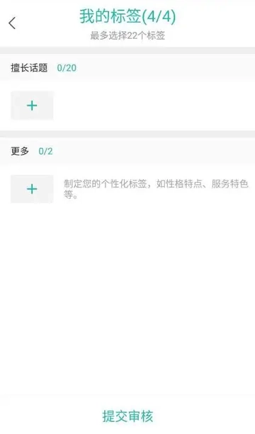 5、挑选契合自身的标签,明确自己擅长倾听的话题,像情感、婚姻、高考、职场、人际关系等;随后点击“提交审核”,接着便可以安心等待审核结果。