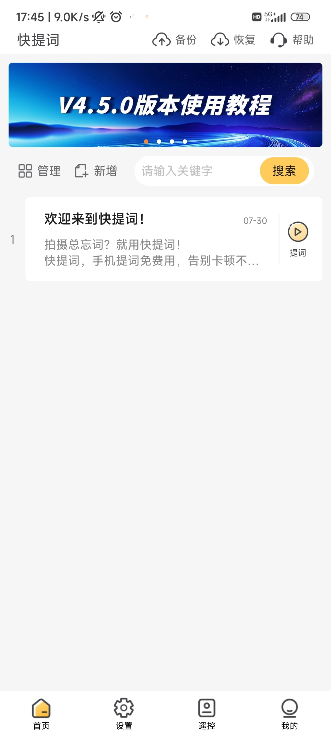 1. 开启快提词,轻点首页里的【新增】