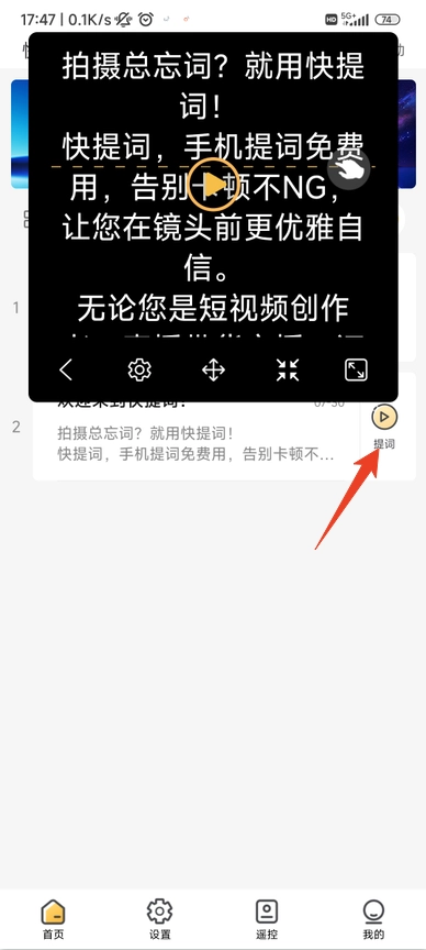 4、最后返回首页,选中刚刚新增的内容,点击【提词】就可以了。