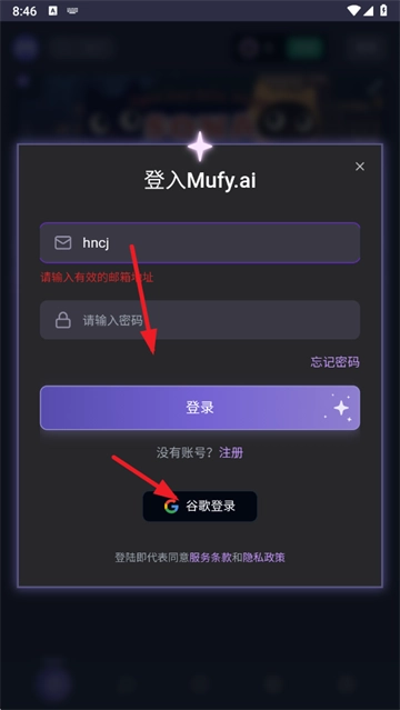 2. 您可输入邮箱及密码后点击登录,此外,也能够通过谷歌账号进行登录。