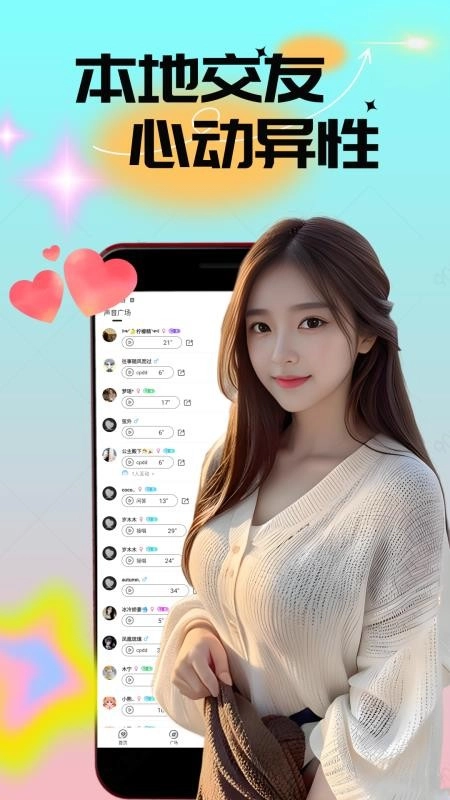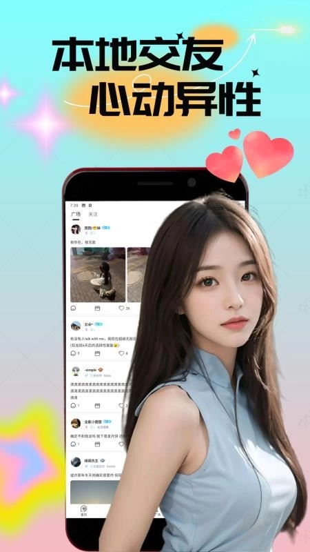 附近人视频闪约,是一款集线上视频聊天、语音互动与文字搭讪功能于一身的应用软件。它专注于提供高质量的线上陌生人社交服务,让你能轻松结识本地高颜值的异性好友,随时与心仪的单身异性展开聊天与搭讪。该平台的聊天用户信息均为真实注册,其智能交友推荐系统十分强大,助你轻松找到更多聊得来的异性朋友,探索更多真实有趣的聊天玩法。 不仅如此,在附近人视频闪约的最新版软件中,社交聊天话题丰富多样,还有更多精彩的交友玩法等你解锁。要是你对这款软件感兴趣,就快来本站体验一番吧!