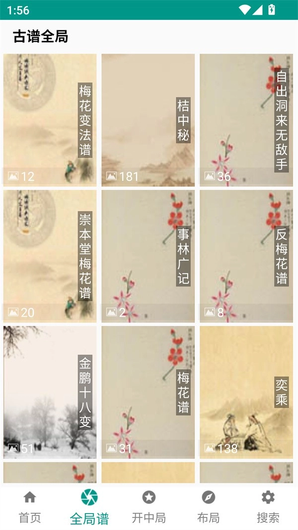 2、来到“全局谱”界面,用户可以直接查看各类象棋古谱和近代谱全局。