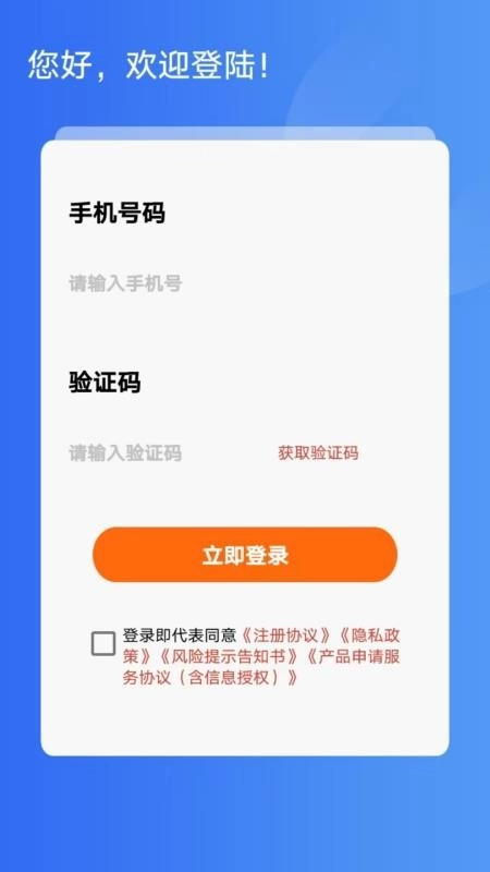 1、在线随心用贷款到手机上,即可使用手机号获取验证码登录;