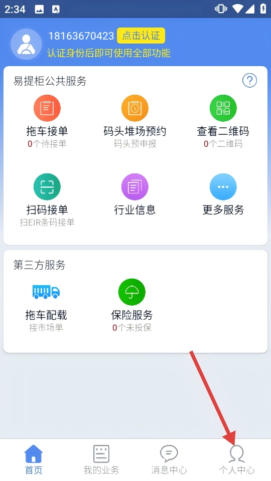 1、在首页点击右下角【个人中心】,进入个人中心页面。