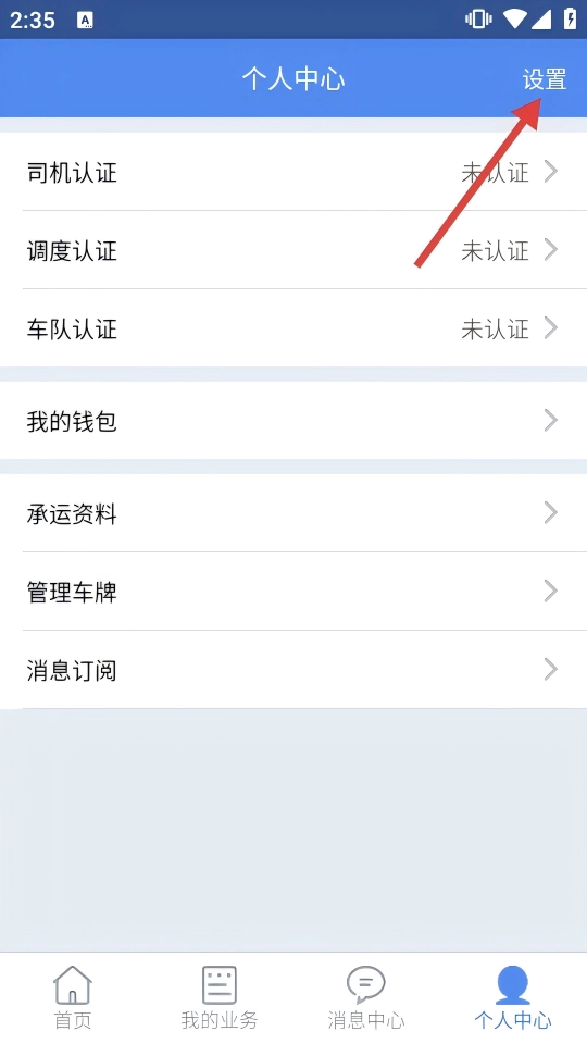2、在个人中心页面点击右上角【设置】,进入设置界面。