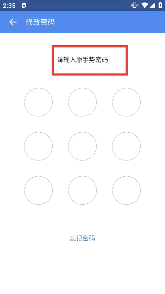 4、在修改密码页面,根据提示绘制原手势密码完成验证,即可继续后续密码修改操作。