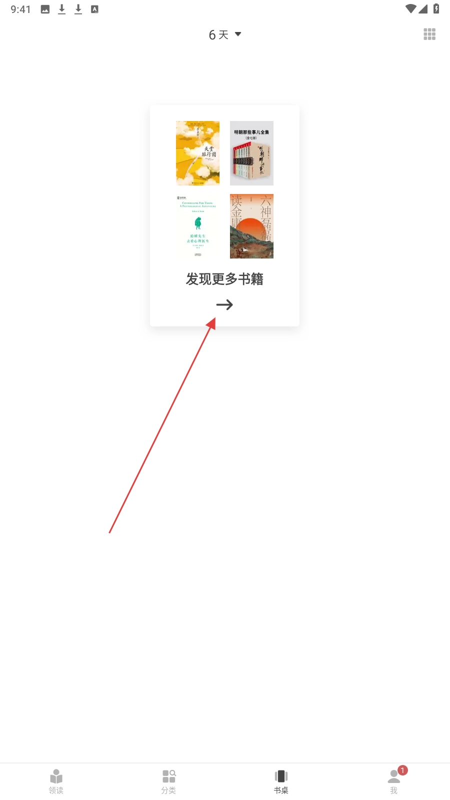 1、点击【发现更多书籍】区域,可进入书籍推荐页面探索更多书籍。