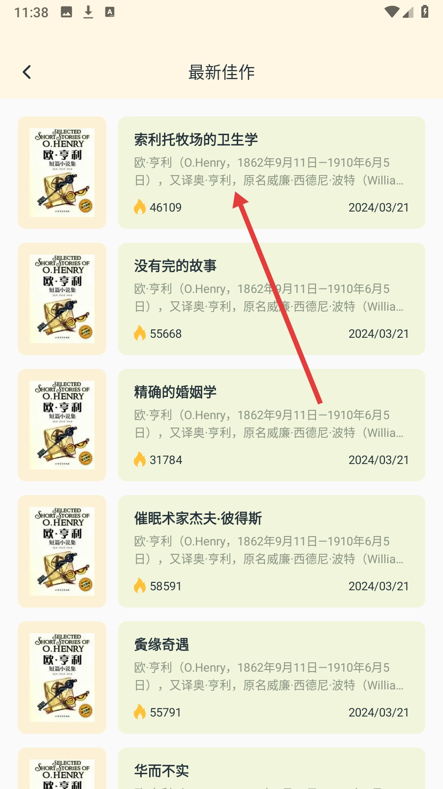 2、推荐页选【最新佳作】,浏览近期优质书籍列表。