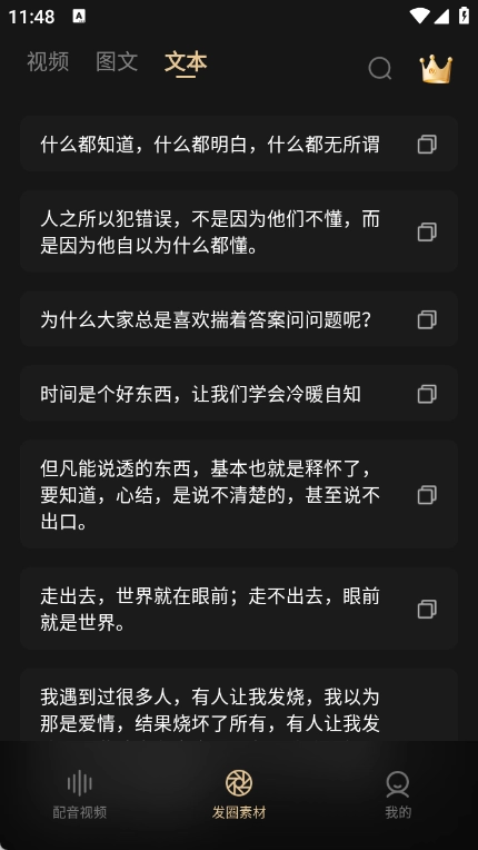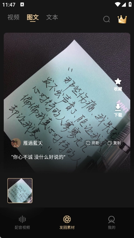 2、在发圈素材的图文里面的内容很丰富,而且可以及时的选择复制;