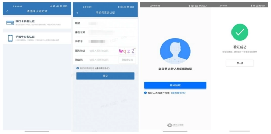 注:进行银行卡认证时,需保证当前所用手机号,正是该银行卡在银行预留的手机号。而手机号认证,必须确保此手机号为本人实名登记的手机号,像亲情号这类非实名手机号,无法通过认证。另外,在实名认证过程中,需要完成人脸识别,所以请务必确认已授权相机使用权限。