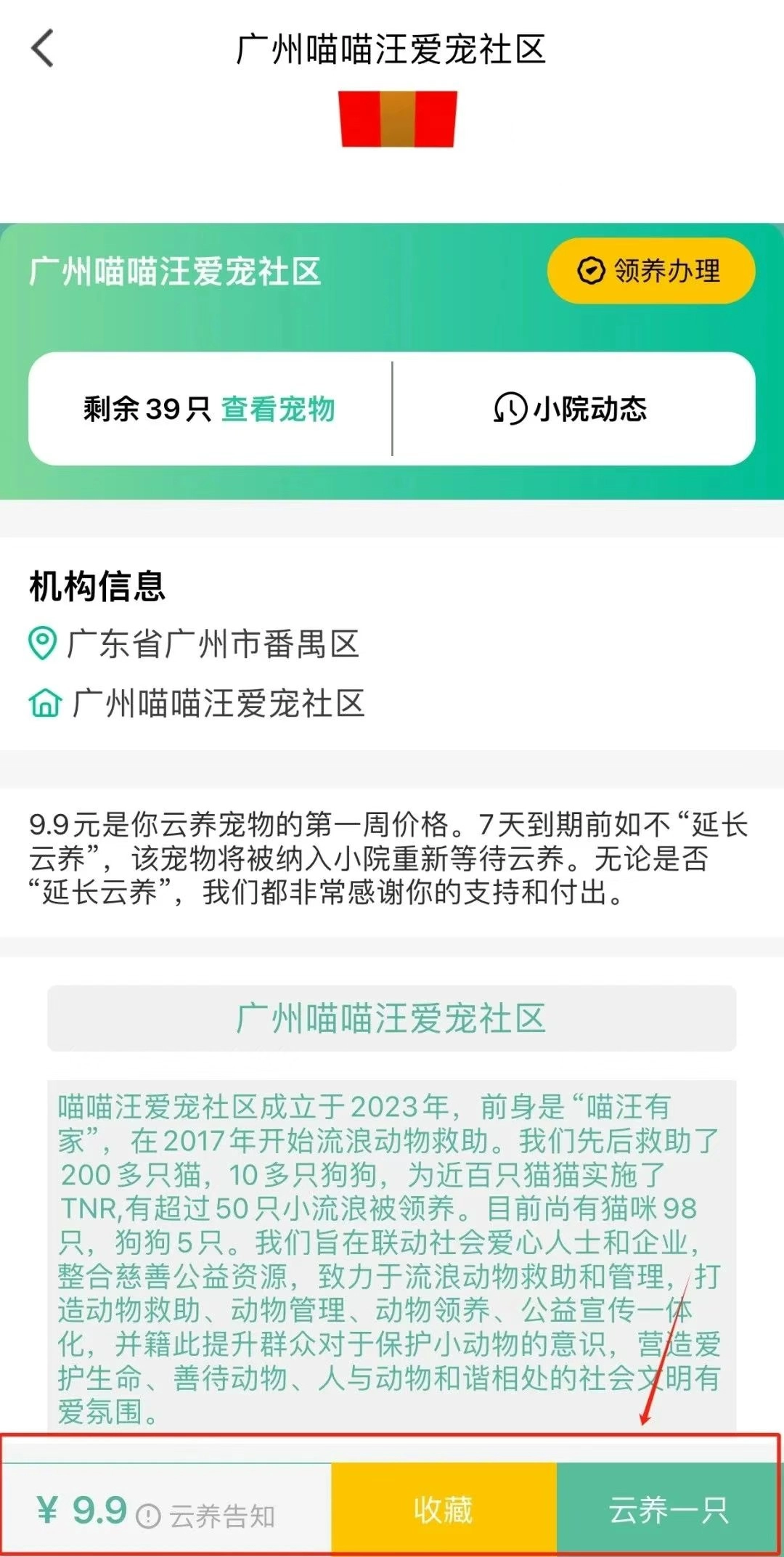 助力爱心小院收养流浪动物;参与云养后,每周你都能看到它的视频动态,还享有优先领养权。