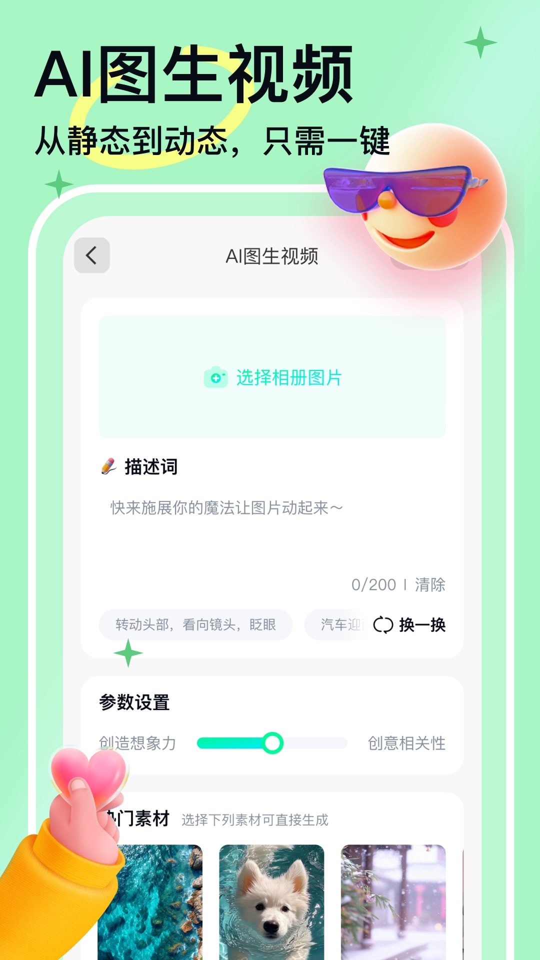 2、你也能够上传手机里的图片,软件具备识别图片以及分析用户需求的能力,能把图片转化为视频。
