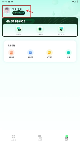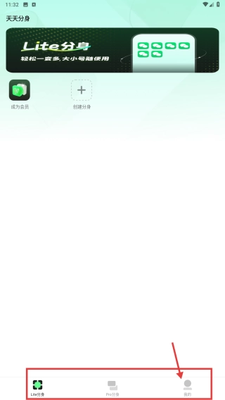 1、打开天天分身应用,点击底部我的选项,进入个人页面。