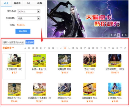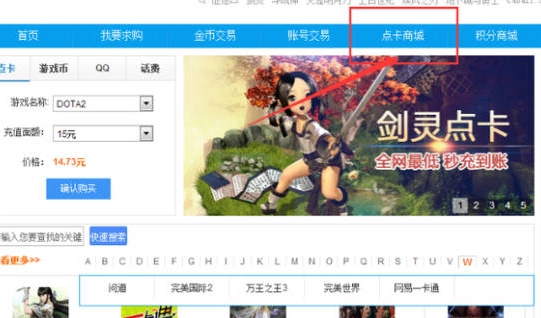 2、在点卡商城的游戏列表中,选择自己所要充值的游戏