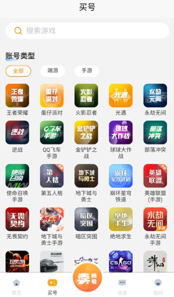 2. 先挑选想要购买账号所对应的游戏,接着借助搜索功能,寻找到相关信息的账号。