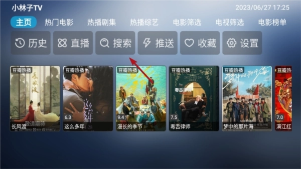 1、首先我们打开小林子TV软件,在主页可以看到很明显的搜索功能。