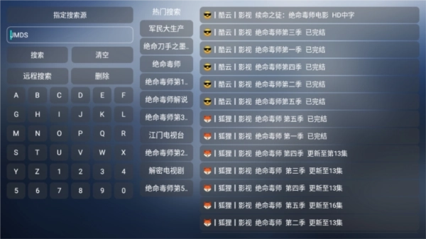 2、然后我们在这里输入影视的首字母就可以开始搜索了。