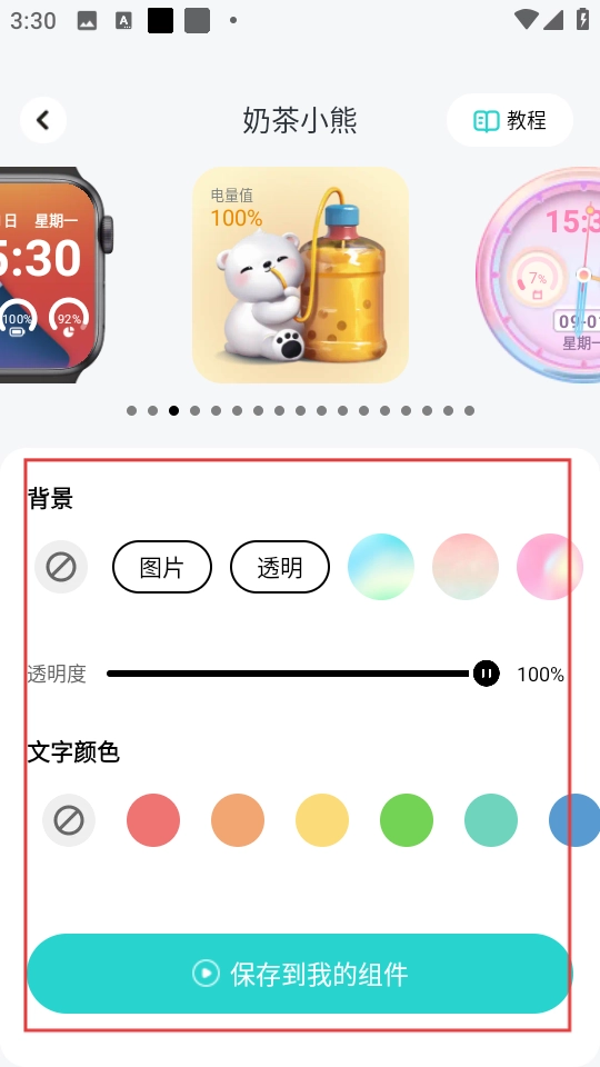 3、在小组件设置页面,设置背景等,点击保存到我的组件。