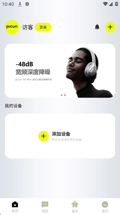 3、用户登录后,可开启手机蓝牙,点击“添加设备”来连接picun耳机。