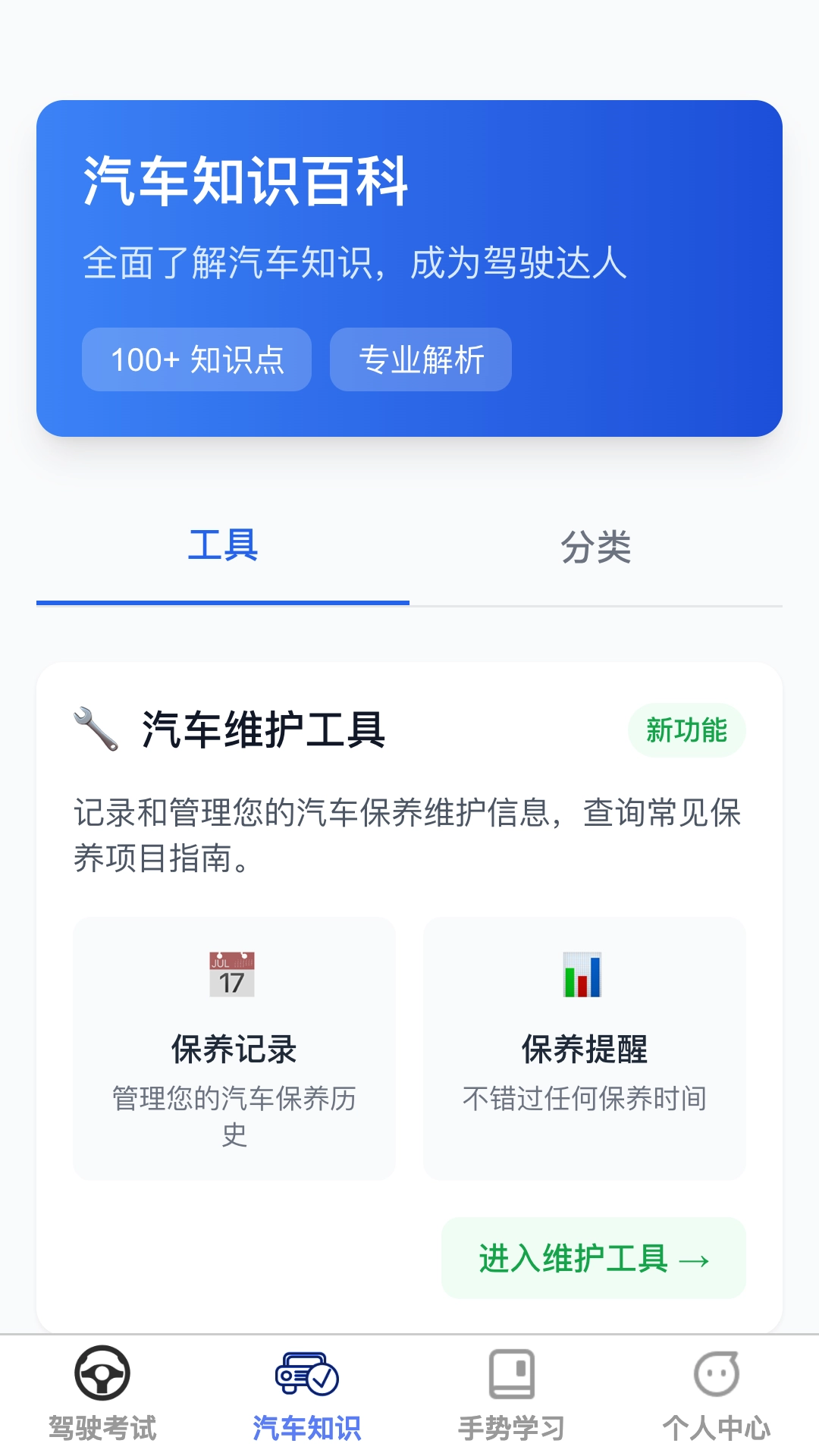 3、除了驾考题库,还额外整合了汽车知识百科以及交警手势学习内容。这不仅能满足考试的刚性需求,还能补充实用的驾驶知识。