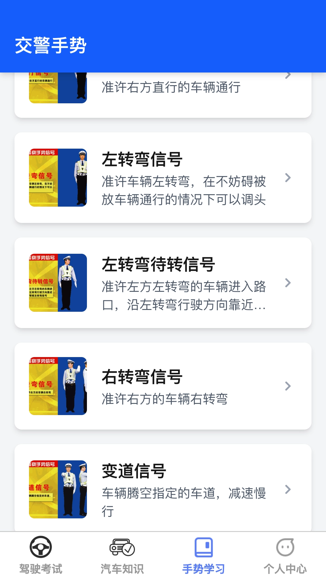4、交警手势学习,帮助大家了解交通指挥信号,学习都是非常的便捷。