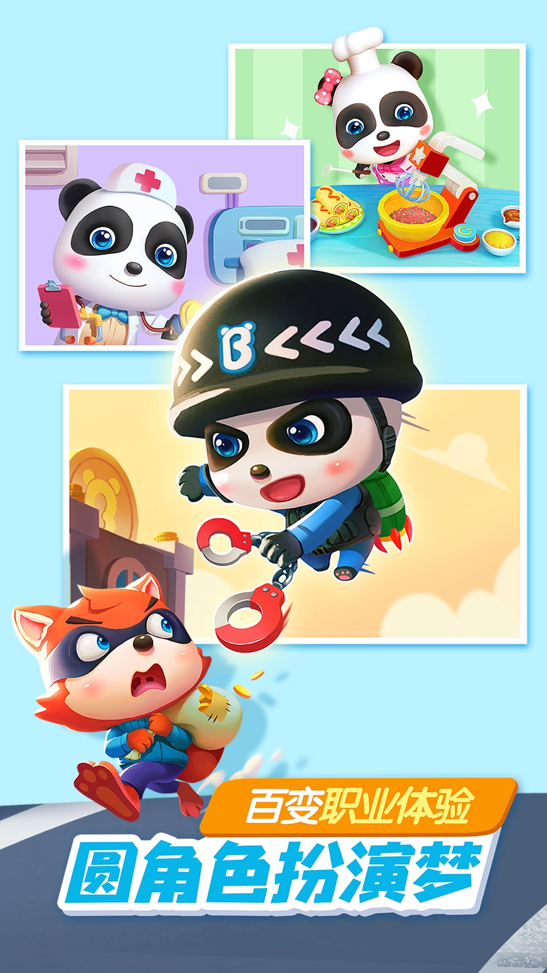 儿童通过角色扮演,体验20多种职业日常,参与艺术创造及益智训练。