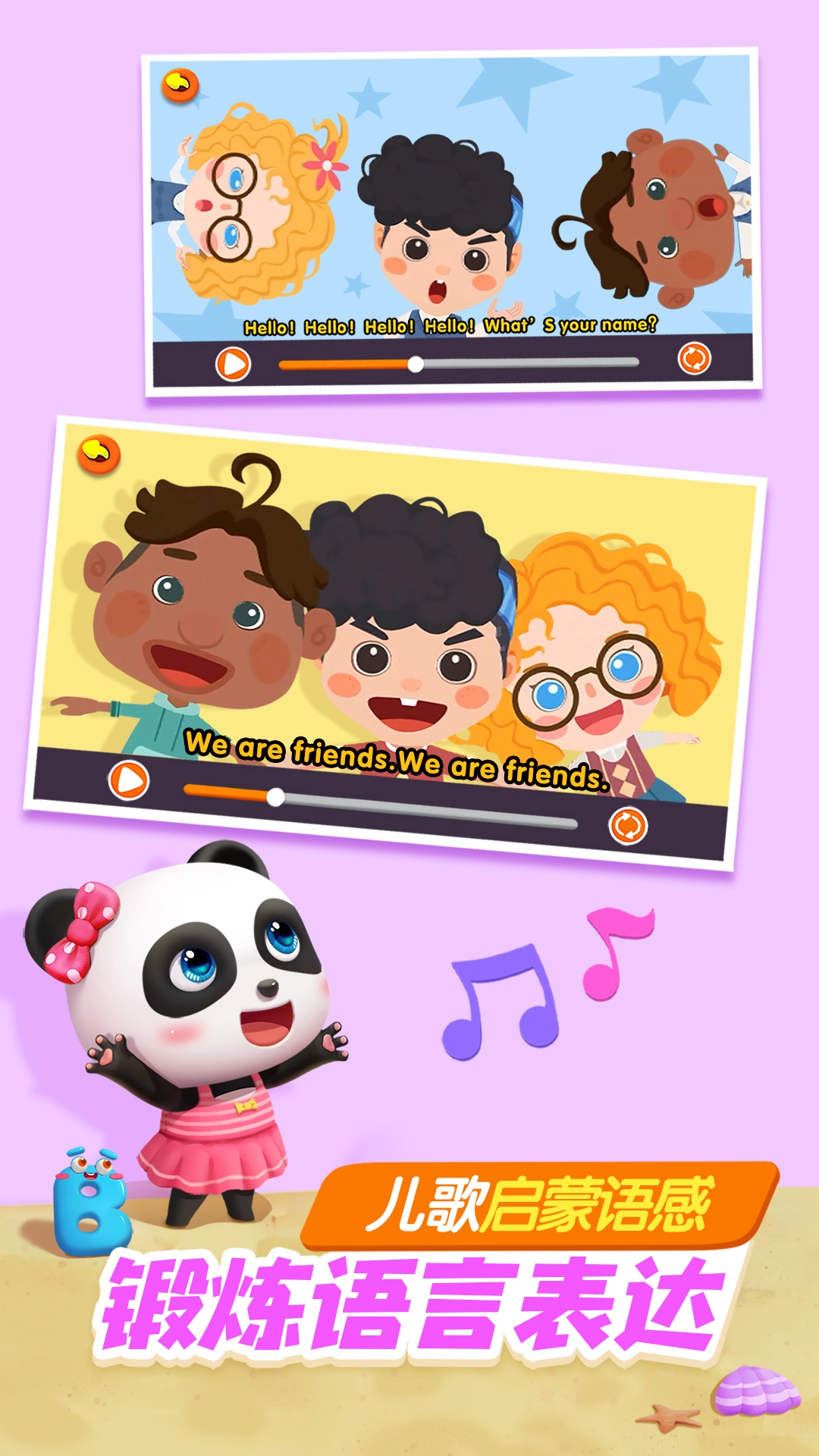 宝宝观看1000多集儿歌动画,认识颜色学习绘画,收获科学小知识,养成生活好习惯。