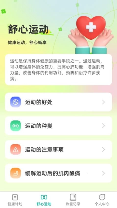 在舒心充能过程中,用户能够自主开展定制化运动计划。系统会依据用户的身体实际状况以及运动目标,为其打造专属的个性化运动计划。此外,用户还能与志同道合者一同分享运动心得、交流运动经验。