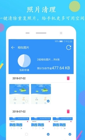 这款垃圾清理软件安全又便捷,能迅速清理手机内存,让您的手机告别卡顿,有效提升运行速度,释放更多存储空间。它还能帮用户清理手机缓存,去除垃圾视频和重复照片,快速清扫各类手机垃圾,节省空间、释放内存。不仅如此,软件还具备优化系统以及电池检测管理功能,为您带来最具实用性的优化助力!